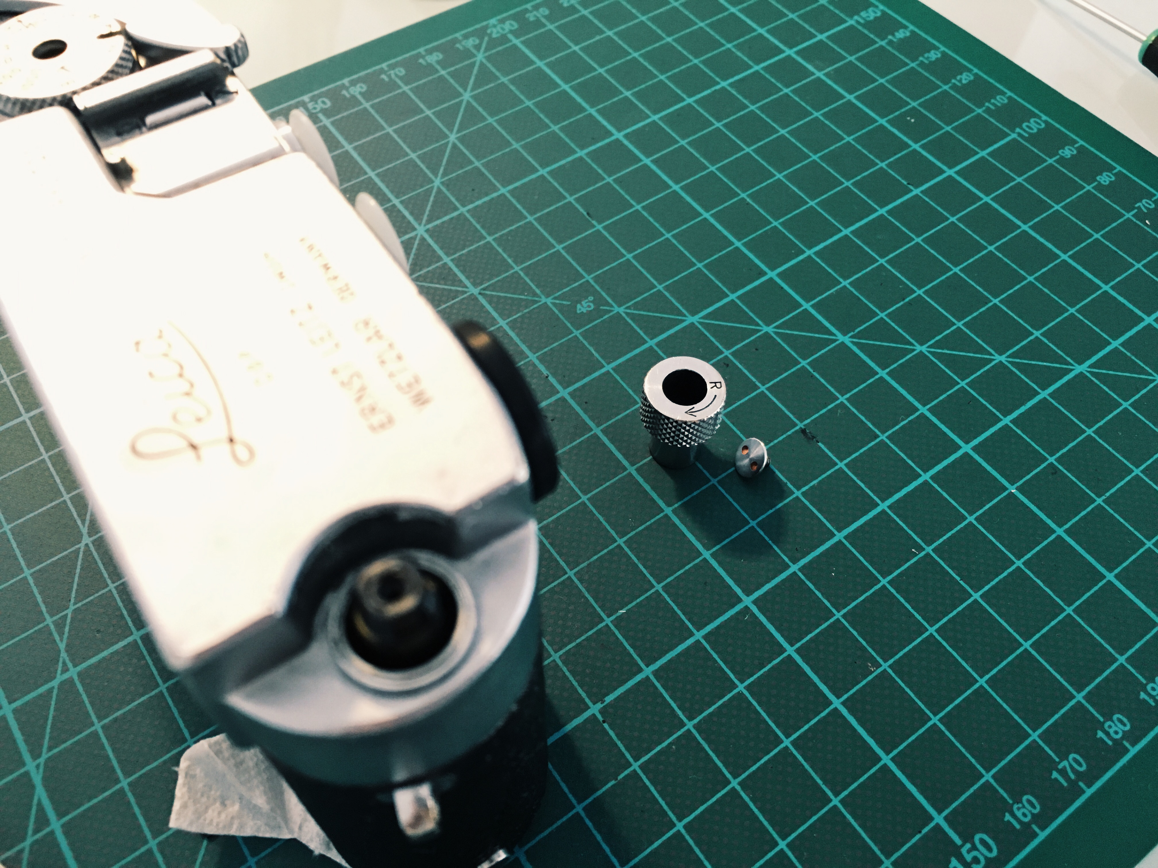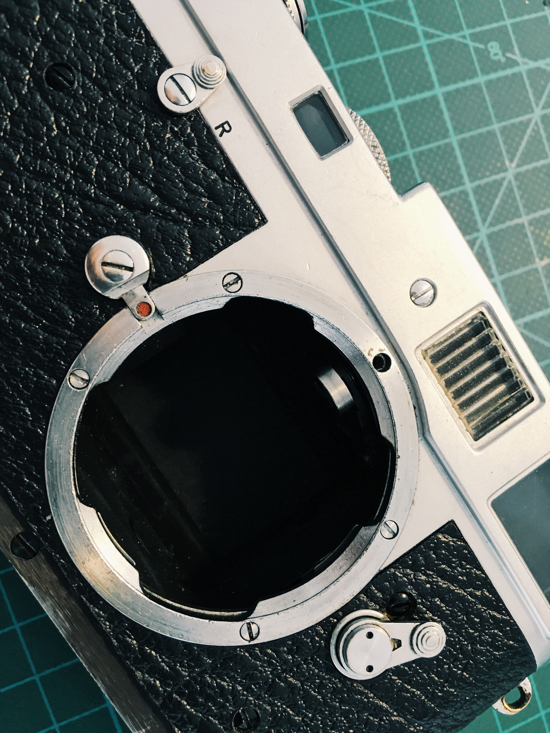 The task was straight forward, starting at the M mount, working around the preview-lever to the back and then around the rewind-lever to the back again. I use the dry process to attach the leather, but I consider myself as a bit more experienced now I've done this around 5 times.