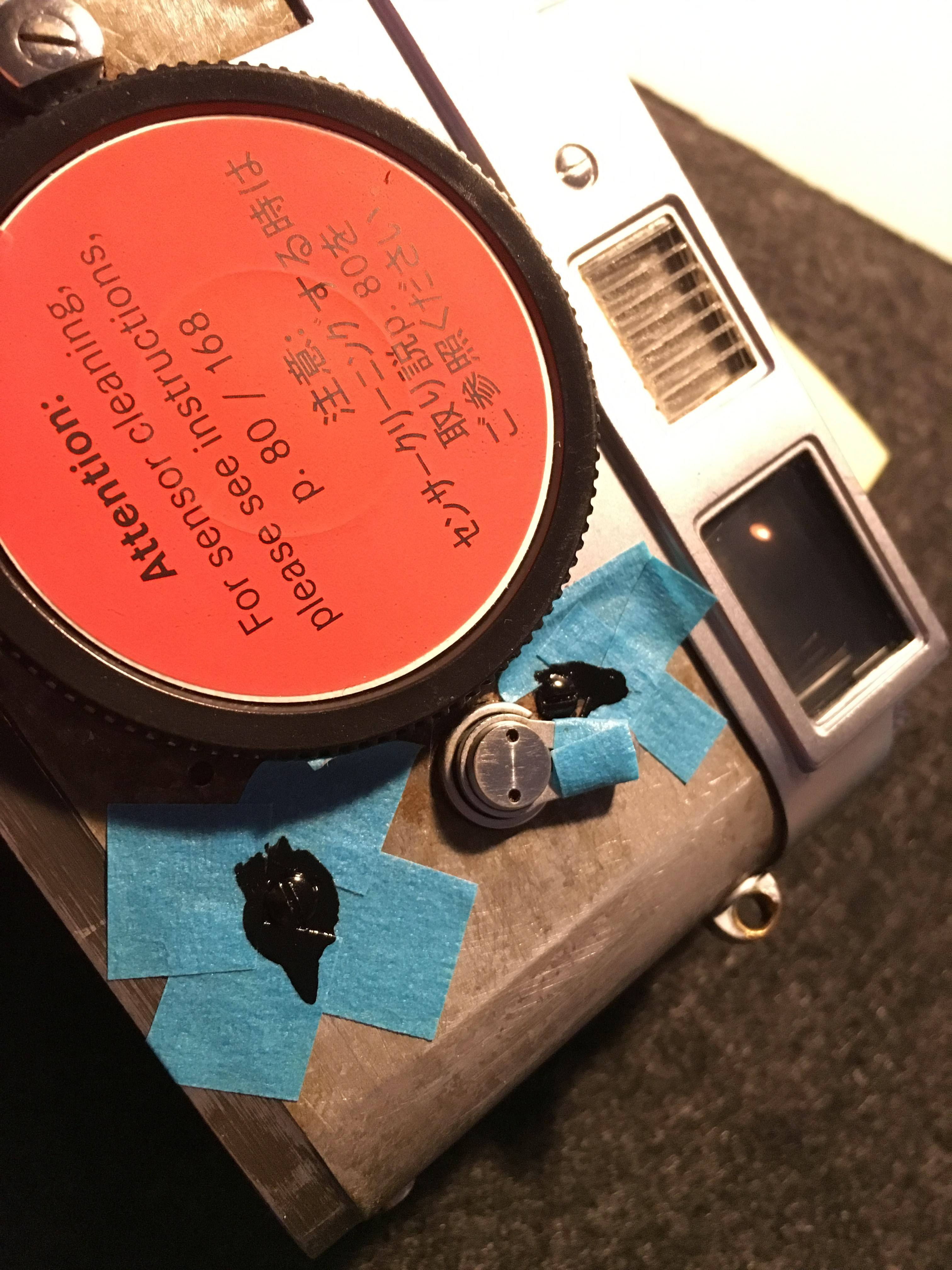 In the meanwhile I learned about how to remove the top plate from the camera and got the right tools to do so.