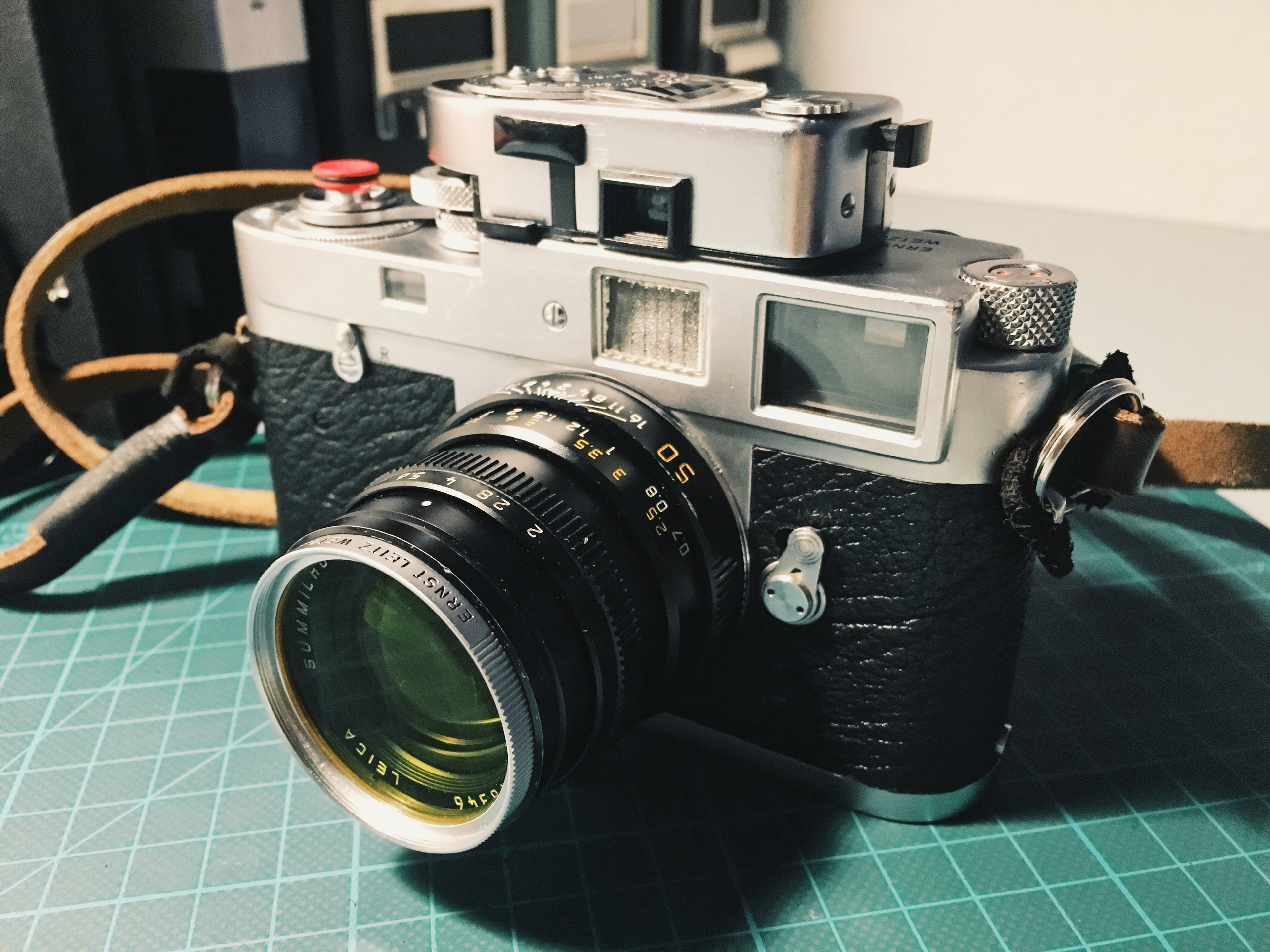 Above is the camera just minutes after the package arrived at my office. I attached the 50mm Summicron-M and started checking basic functioning (e.g. shutter times, curtain closure).