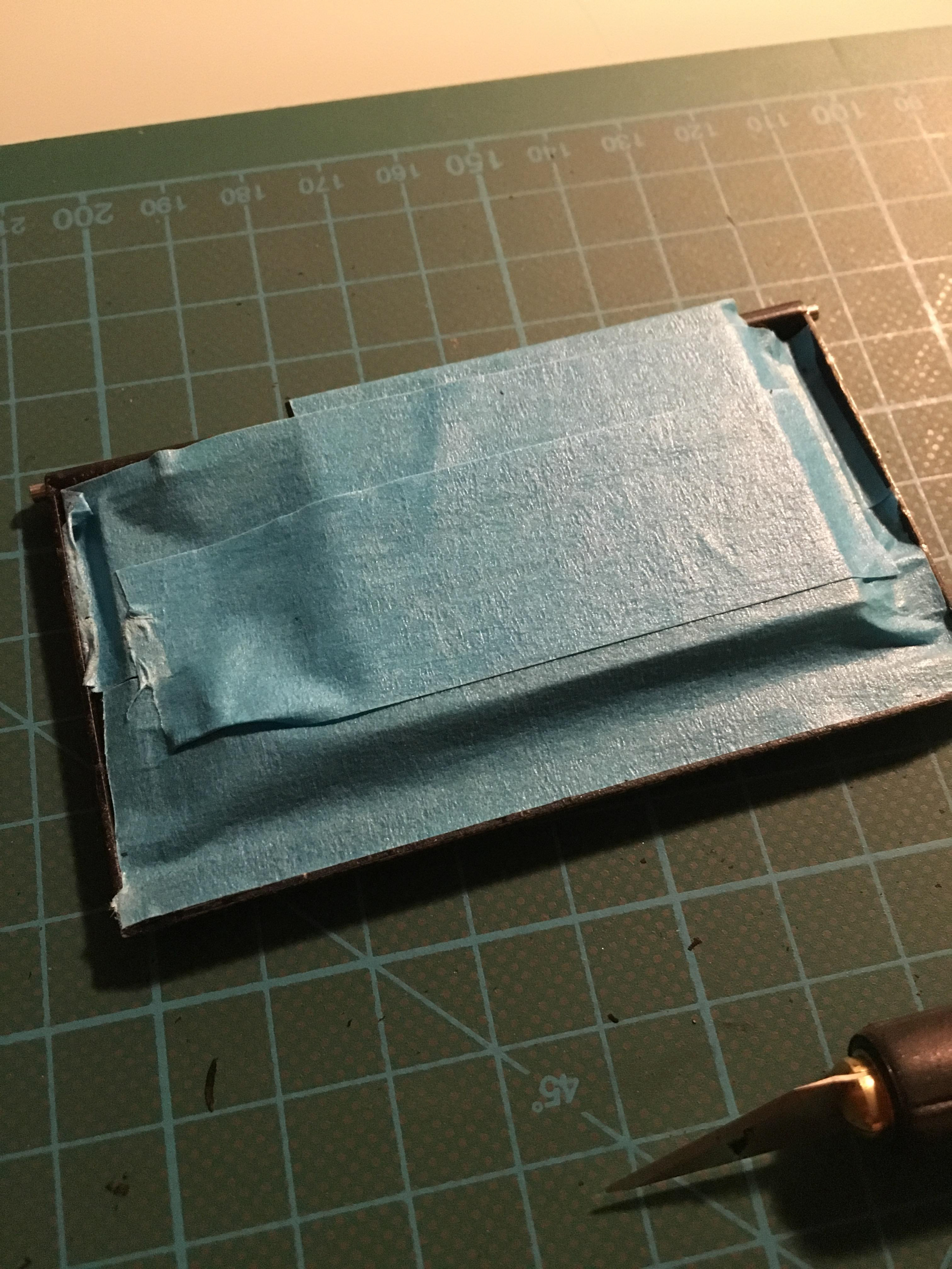 The backplate needed some special attention, as I wanted to repaint it flat black again. I covered the important parts with tape, removed the remaining paint, vulcanite, and started painting it using black car spray paint.